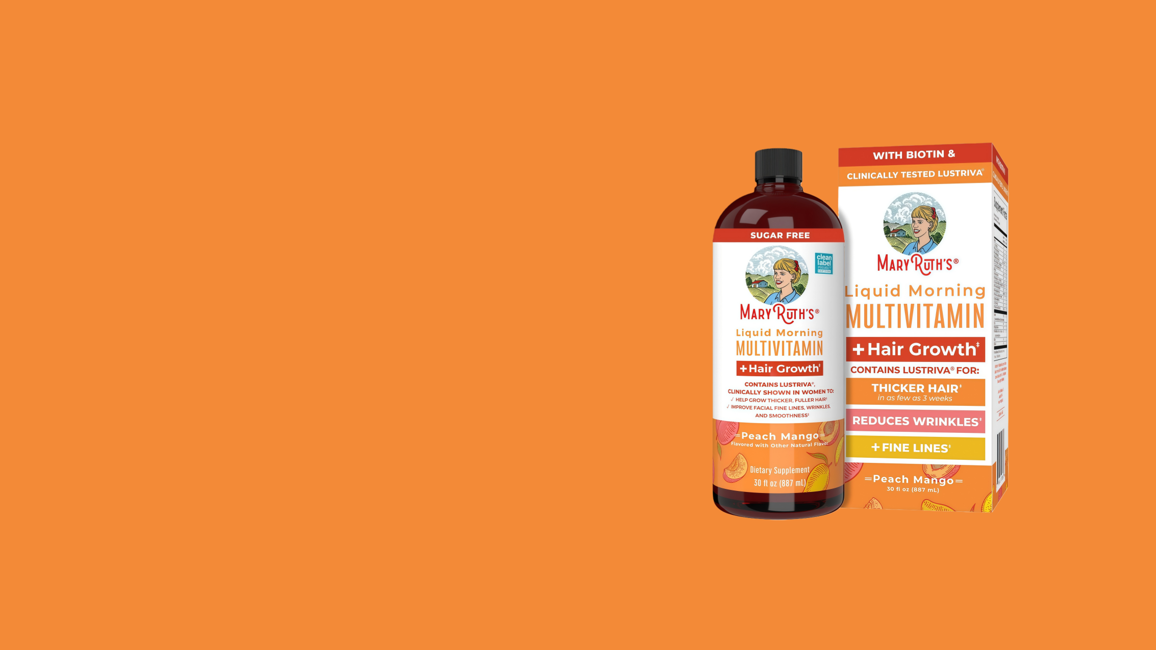 Our Liquid Morning Multivitamin + Hair Growth harnesses clinically studied Lustriva® to support thicker, fuller hair in as soon as 3 weeks.* Plus, it delivers essential nutrients for skin, nails, and overall wellness in every daily dose.