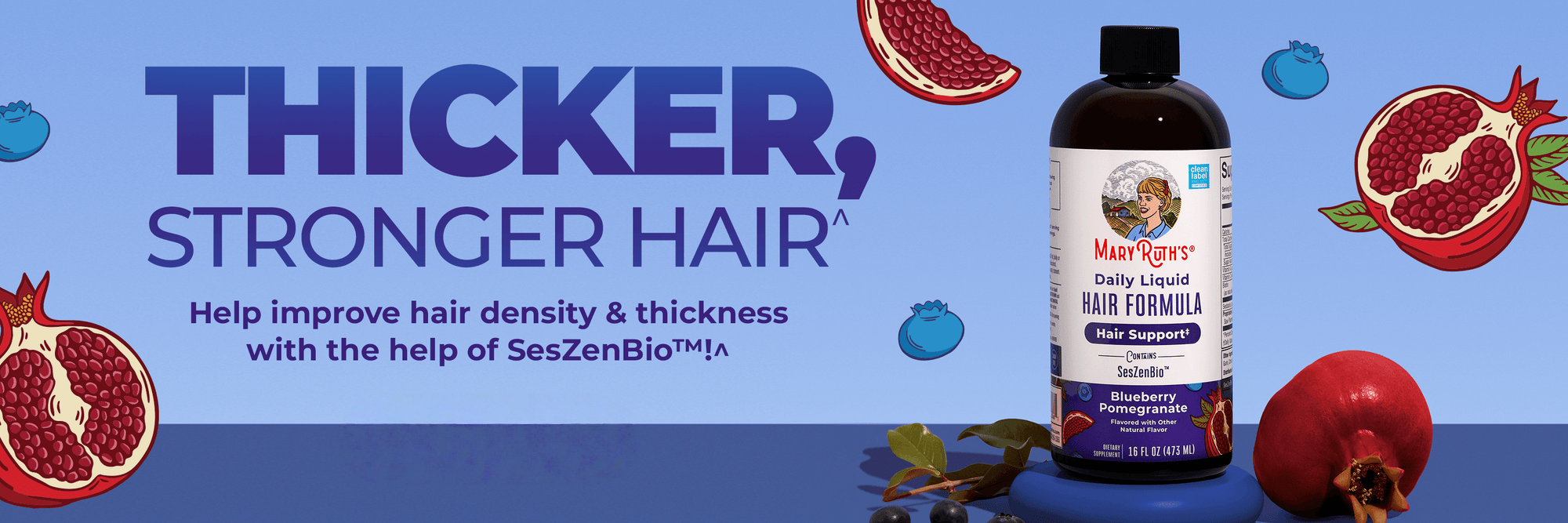 Our Daily Liquid Hair Formula is designed to support thicker, fuller-looking hair with a clinically inspired blend. In as little as a few weeks,* it helps promote stronger strands and healthier hair from the inside out. Plus, it delivers essential nutrients to support glowing skin, healthy nails, and overall daily wellness—all in one easy dose.