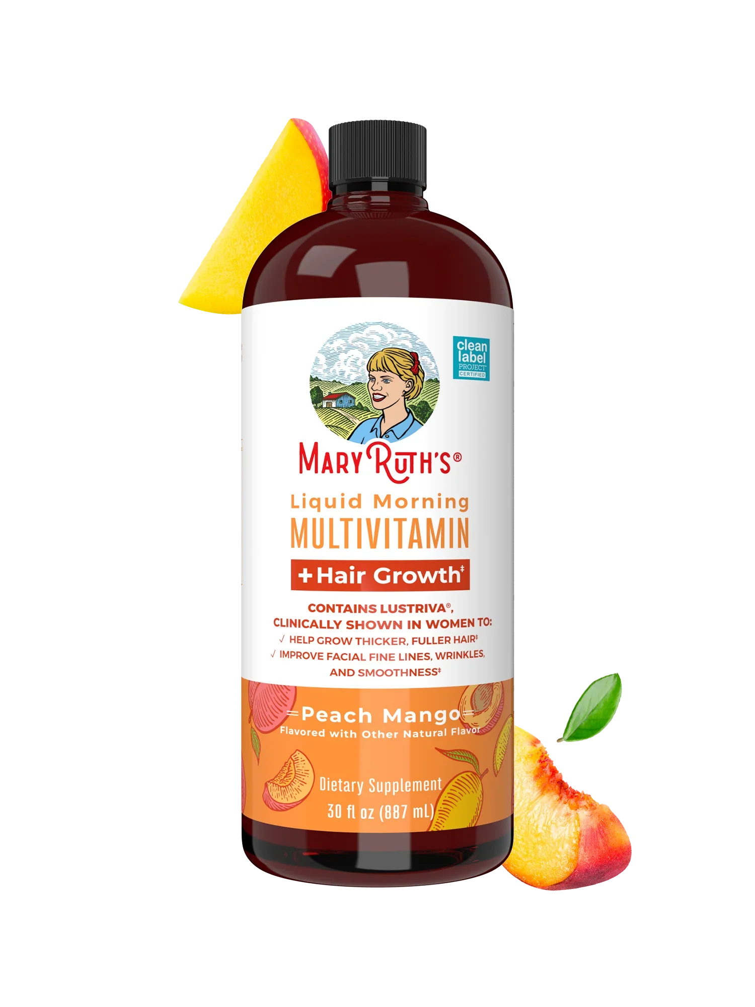Enjoy an easy-to-take liquid multivitamin crafted specifically for women. This refreshing peach-mango formula delivers essential vitamins, minerals, amino acids, and daily nutrients your body needs. Powered by clinically tested Lustriva®, it’s designed to help support healthier, fuller-looking hair while nourishing overall wellness from within.