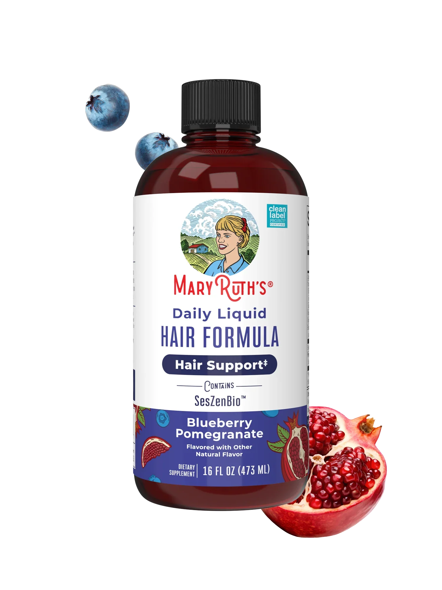 Enjoy an easy-to-take liquid hair formula designed to support healthier, fuller-looking hair. This great-tasting blueberry pomegranate blend delivers essential nutrients and a clinically inspired botanical complex to help improve hair density and strength.*